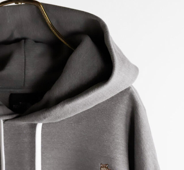 サステナブルを考慮した素材「カポック」を使用した、プルオーバーのスウェットパーカ。