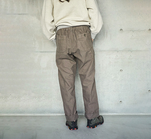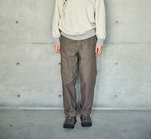 イージーパンツのようなリラックスした穿き心地のフレンチワークパンツ。程よく厚みのあるヘリンボーンツイル生地に洗いを施し、柔らかな質感に仕上げてあります。