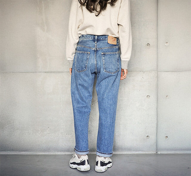 1990年代の最もスタンダードな5ポケットをイメージしたデニムパンツ。レンングスをやや短めに設定しています。