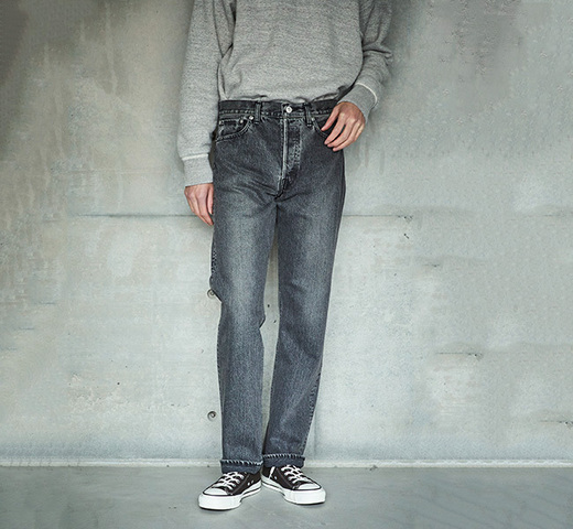 サイドは耳なしの脇割使用。どことなく90年代の良い意味で“チープ”なデニムの雰囲気が出ているのが特徴的。 ブラックデニムはかなり重宝するボトムスで、様々なスタイリングに組み合わせることができます。