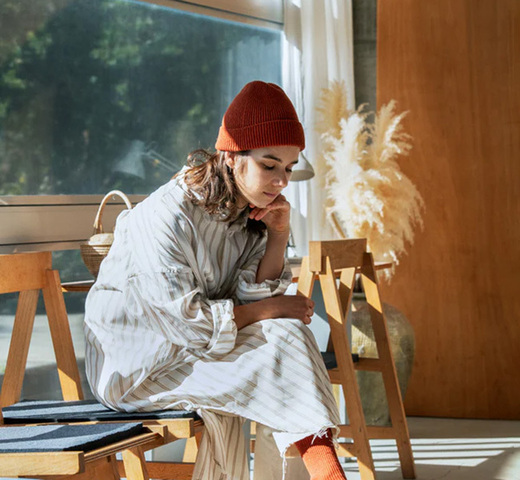 和紙の糸とリサイクルコットン糸の撚糸を使用した、程よいシャリ感が心地よい3シーズン(春~秋) 対応のビーニー。