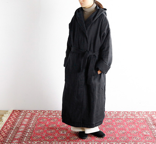 SOIL(ソイル)2022A/W collectionより、"WOOL LINEN PLAIN WITH QUILTED LINING”のフード付きロングコートです。