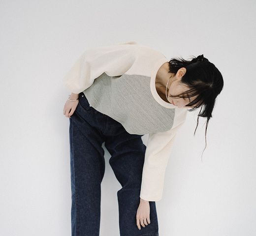 オリジナル素材を使用したワッフル生地の3/4カットソー。