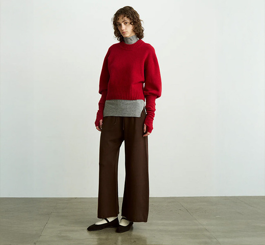 mizuiro ind|mizuiro ind ミズイロインド 4-230055 ウールブレンド バルーンスリーブ チュニックシャツ