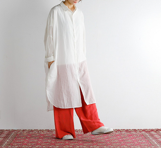 mizuiro ind|mizuiro ind ミズイロインド 4-230055 ウールブレンド バルーンスリーブ チュニックシャツ