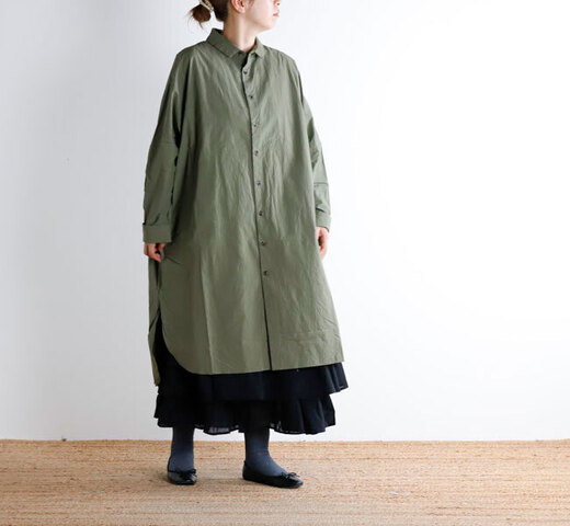 長くご好評いただいているロングシャツ。VC-1962型と同じシルエットです。ゆとりある身幅と、風通しの良い着心地も魅力です。前開きなので、軽い羽織としても大変便利なアイテムです。