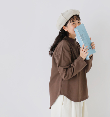 程よくゆとりのあるシルエットで体のラインを拾いにくく、どんなボトムスとも相性よく着こなせます。着丈はヒップあたりまでカバーし、冷えやすい季節にも安心。