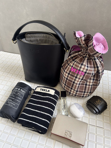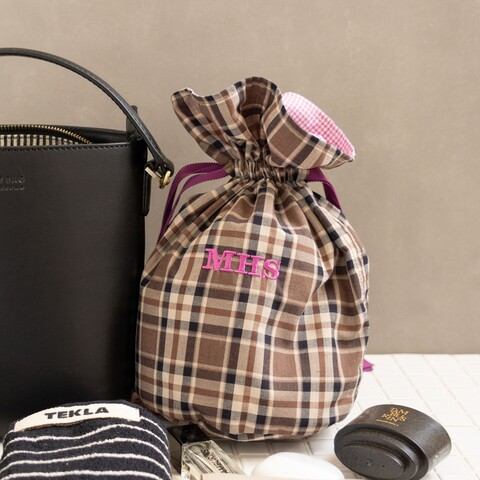 AWらしいブラウンカラーに、大人パープル配色♪ 中のギンガムチェックもお見逃しなく!