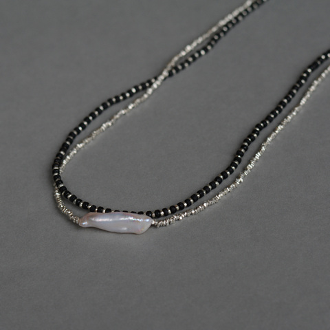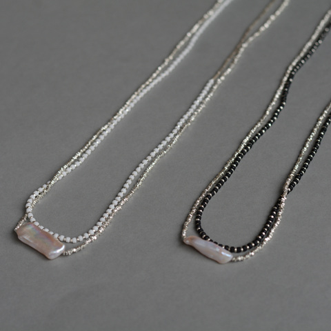 ポイントに配置したバロックパールが二重に巻いた時にペンダントとなります。