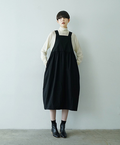 siro de labonte|ロングワンピース ジャンスカ ストレッチツイル Vネック レイヤード サロペットスカート オールインワン R543307 シロ デ ラボンテ
