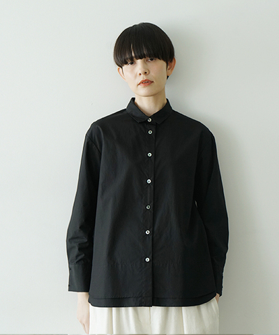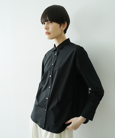 上品な光沢としなやかな肌触りが特徴の上質なフィンクスコットンを使用したシャツ。 裾は軽くラウンドし、二重仕立てで動きやすく軽やかな印象に。 小さめの衿が、きちんと感を残しつつも繊細で柔らかな雰囲気に。 一枚でさらりと着るのはもちろん、レイヤードにも活躍する一着です。※フィンクスコットンを証明するラベル付き。