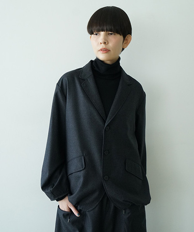 暖かい上質なフラノウール生地で作りました。 カジュアルからキレイめまでスタイリングの幅が広がるジャケットです。 裏地付き。 同素材の sarouel pants とセットアップで着ていただくのもおすすめです。