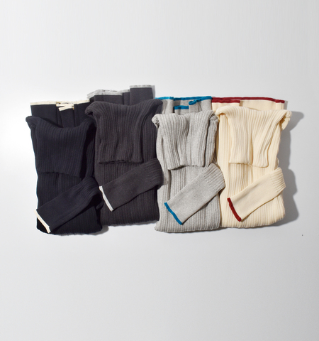 毎年大人気のランダムリブシリーズから、アクセントの効いた「バイカラー」タートルネックが登場。