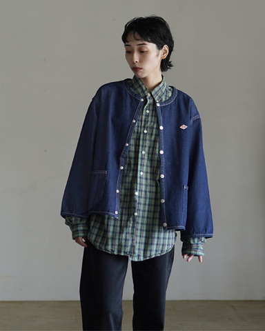 ゆったりとしたシルエットが魅力のクルーネックジャケット。軽量な10ozデニムを使用し、柔らかく馴染む着心地が特徴です。