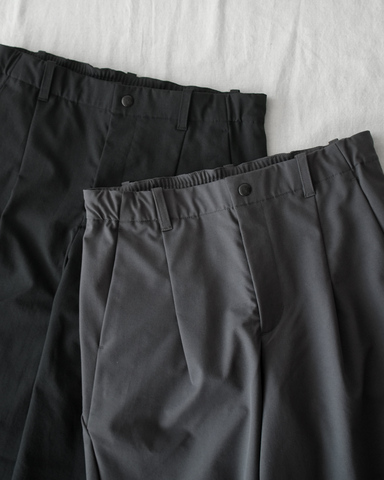 通年で着用しやすい程よい厚みで、季節や天候を問わず活躍。腰回りはタックを入れてゆとりを持たせ、裾に向かって控えめなテーパードを効かせたシルエットで、美しいレッグラインを演出します。