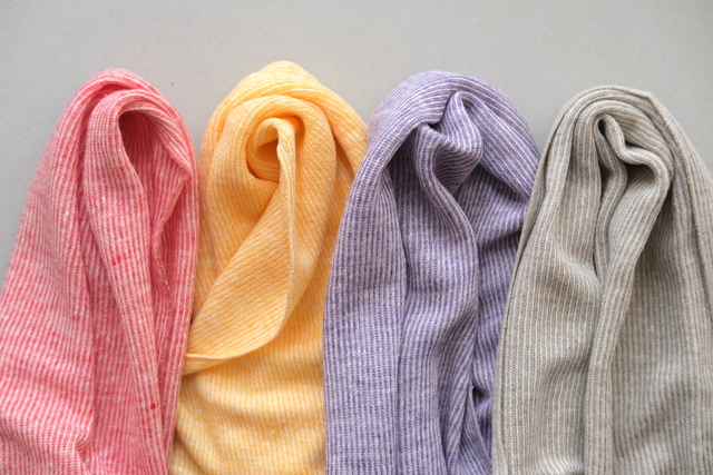カラーもたくさん揃えています。元々はコレクションブランドの製品も手がけていたメーカーならではの色使い。リネンはコットンよりも色が透き通った感じに明るく綺麗に染まり、その特性も活かされたカラーバリエーションです。