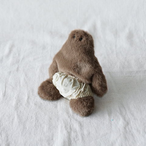 ちょこんと腰を下ろして、あなたの隣でくつろぐ「おぱんつ君」。まるで「一緒に過ごしたい」と語りかけてくるような愛らしさが魅力です。
