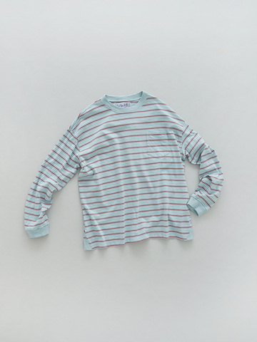 ヒップにかかる程の着丈、ゆったりとした着心地のロングスリーブTシャツです。ラフなシルエットと爽やかな配色のボーダーの組み合わせが、ボーイッシュな雰囲気の一枚です。