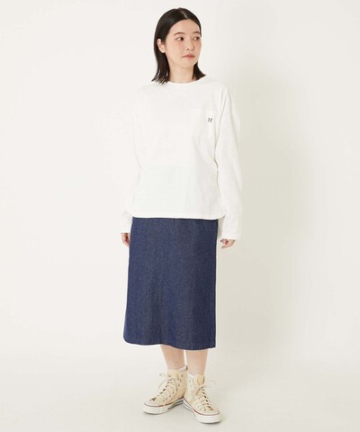HOLLYWOOD RANCH MARKET|Hエンブロイダリー ラウンドヘムTシャツ ウイメンズ 半袖 カットソー H刺繍 日本製