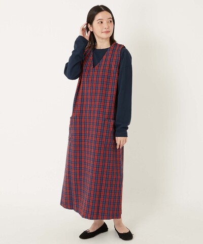 ダーツを入れて程良くメリハリは出しつつ、ストンと落ちるゆったりしたシルエットです。インディゴ特有の綺麗な色合いのチェックを最大限に活かす為にシンプルに仕上げました。ボタンをアンカーボタンにしてアクセントにしています。