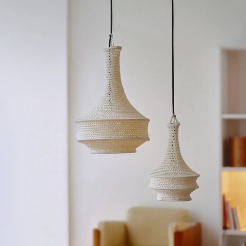単色のモロッコ・ニットランプ Kroushは、ホワイトとベージュの2色。