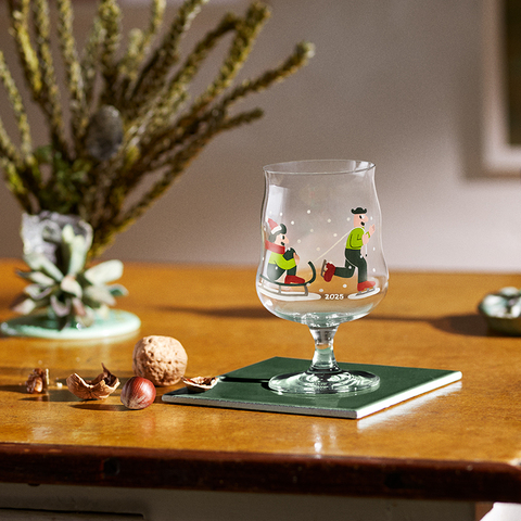 2025年のクリスマスイヤーグラスには、シリーズのユニバーサルグラスに美しい装飾を施したホリデーエディションが登場。