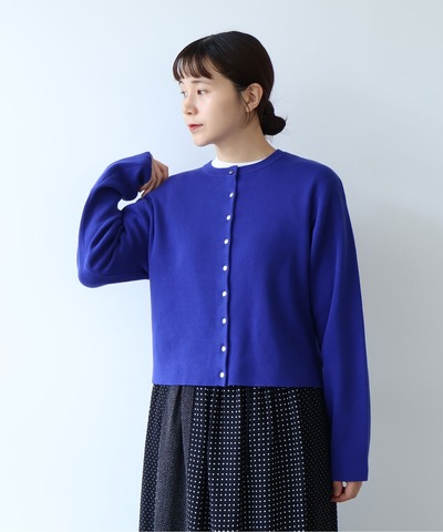 yuni定番の強撚綿糸を使った、スムースニットのショート丈カーディガン。