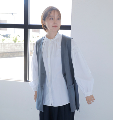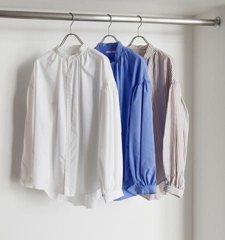 manon|コットン ギャザースリーブ バンドカラー シャツ “GATHER SLEEVE BAND COLLAR SHT” mnn-sh-302-mn