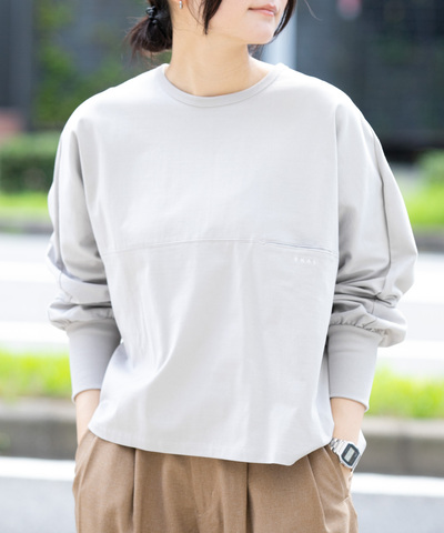 ドルマンスリーブのゆったりとしたデザイン。長めの袖のリブもアクセントになっています。