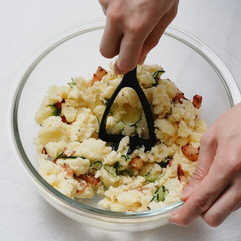 じゃがいもやかぼちゃなど、食材をつぶすのに役立つマッシャーですが、食材の量が多いと大変。手や手首に負担がかかりますよね。