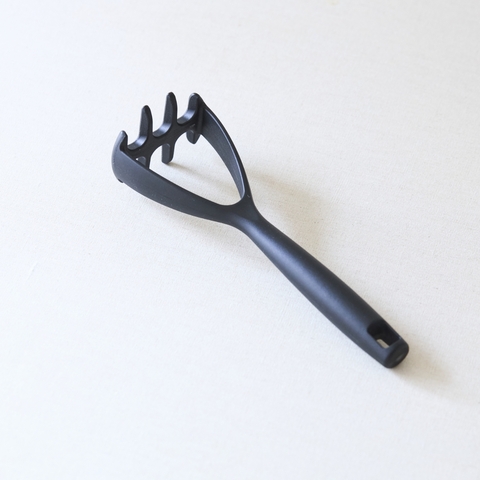 マッシャーは穴が空いているタイプのものが多いのですが、こちらはヘッド部分がフォークのような形状になっています。穴のタイプは食材が詰まってしまうんですよね。つぶしている最中に詰まった食材を取るのに手間取ったり、洗いにくかったりします。フォークのような形状なら詰まりにくく、詰まったとしてもすぐに取ることができます。