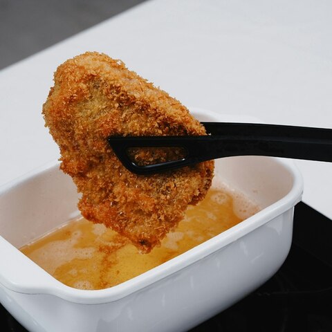 また、トング内側に付けた滑り止めの凹凸によって、食材の掴みやすさも格段にアップ。菜箸で苦戦しがちな小さな食材から大きなトンカツまで、安定して掴むことができるんです。食材が滑って再び油に落としそうになった、油が盛大にはねて怖い思いをしたことがあるという方にもおすすめですよ。