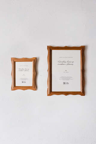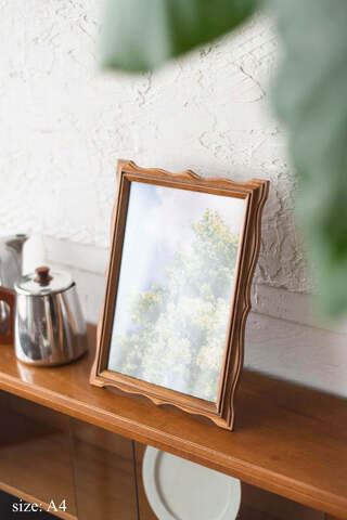 上質なチーク材を使用し、自然の風合いを生かしながら縁にやわらかな動きをつけたフォトフレーム。