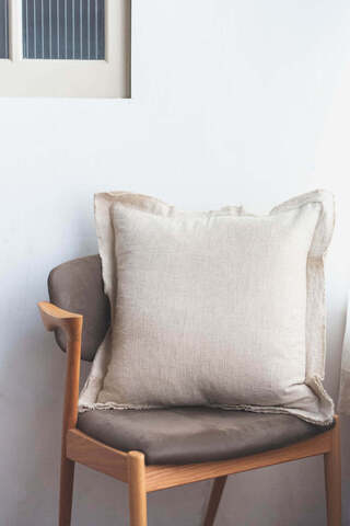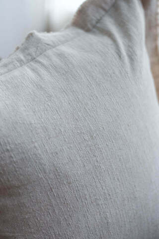 綿×リネンの素朴な風合いが魅力のクッションカバー。生成りのやわらかなカラーが空間に自然と馴染み、ざっくりとムラ感のある生地は、光や角度によって異なる表情を見せます。くたっとした柔らかさも心地よく、使い込むほどに風合いが深まる素材感です。