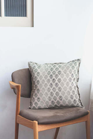 ポン、ポン、と木版を押す音が聞こえてきそうな、手しごとのぬくもりを感じるクッションカバー。