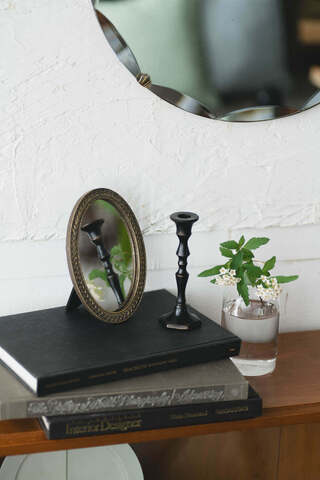 お気に入りのミラーや花器と並べれば、アンティークの世界観がより一層引き立ちます。リビングやドレッサーの一角にそっと添えるだけで、ディスプレイ全体に奥行きとリズムが生まれ、眺めていたくなるような空間に。
