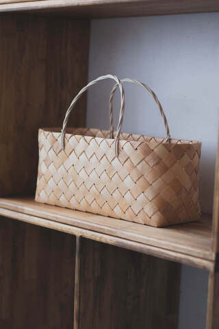 Snokka Handle Basket - もみ木のやさしさと実用性を編み込んだ、細長いバスケット