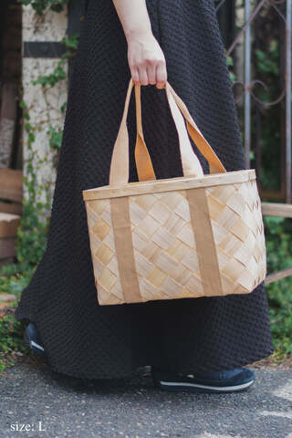 木のぬくもりに包まれて、持ち運ぶたびに心がふっと和らぐような、そんなかごバッグです。