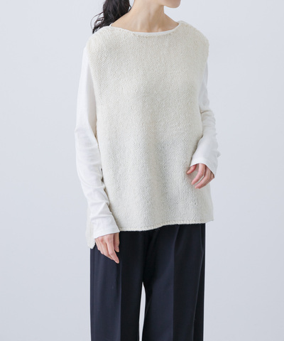 カットソーやブラウス・シャツと合わせたり、ワンピースに重ねたりと着まわし力の高い1枚。