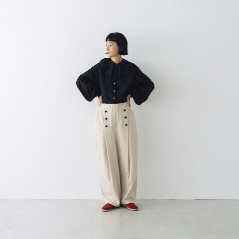 昨シーズンから好評のUNIVERSAL TISSU のコーデュロイ素材のブラウスとパンツ。