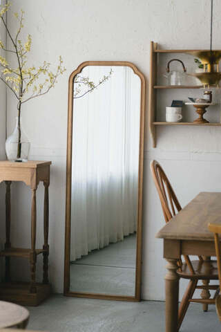 大きめのサイズですが、フレームは細く仕立てて、鏡面を広く取りました。空間に奥行きと広がりを与え、また光を多く反射するので、お部屋が明るく開放的になります。