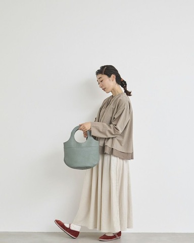ころんとしたシルエットがコーデにかわいさをプラスして、見るだけで笑顔をくれるトートバッグ。まぁるい持ち手は手にやさしく、ちょっとそこまでのお出かけを楽しくしてくれます。長財布・スマホ・キーケース・ハンカチなど、必要なものはしっかり収納できるので、コンビニやスーパー、子どもの送り迎えなど、なにかとちょうどいいサイズ感です。