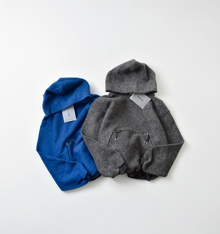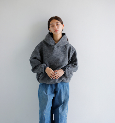 クラシックなスウェットをヴィンテージ感漂う表情で仕上げたフーディー。立体感のあるフードやゆとりを持たせたリラックスフィットが、モダンな存在感をプラスします。袖口と裾のリブが生み出す柔らかなボリュームシルエットに、ジップ付きカンガルーポケットを配し、デザイン性と実用性を両立。シェットランドウールジャージー素材を使用したウールポリ素材による軽やかで柔らかな着心地も魅力で、日常に溶け込む一枚です。今シーズンではよりデイリーに着回しやすいよう、装飾やプリントを省いたプレーンなデザインを採用しています。