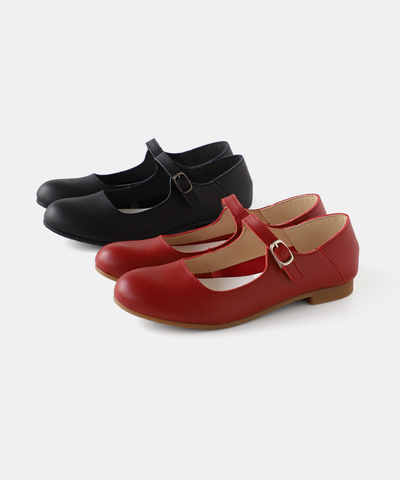 隠しゴムで履きやすい 丸いトウがキュートなストラップシューズ