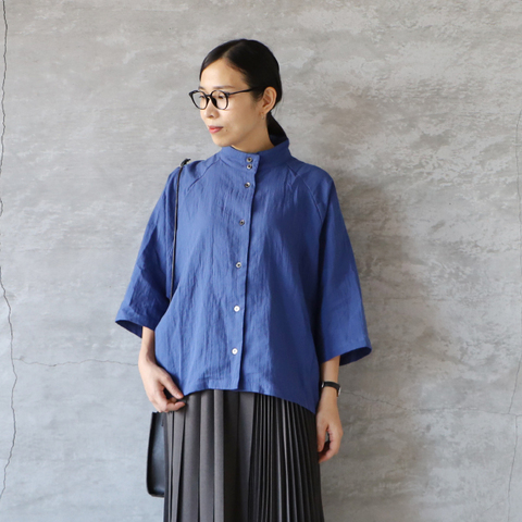 BLUE LAKE MARKET|ブロード近江晒ラウンドヘムオーバーシャツ