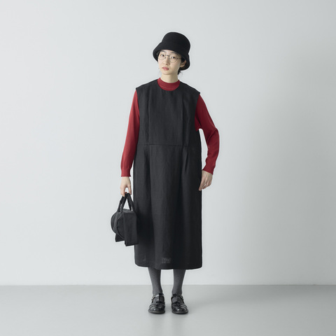 上品な光沢感とヴィンテージな風合いのある、程良い厚みのリネンツイル生地を使用したワンピースです。