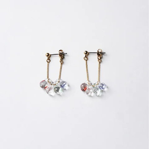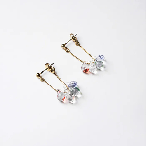 イイダ傘店の繊細で鮮やかなテキスタイルをガラスで表現した、生き生きと輝くガラスのアクセサリー。