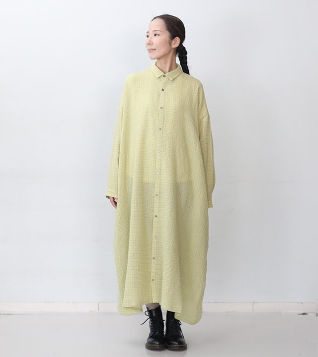 Gymphlex|バンドカラー シャツワンピース BAND COLLAR SHIRT DRESS 長袖 GY-G0064BIT ジムフレックス