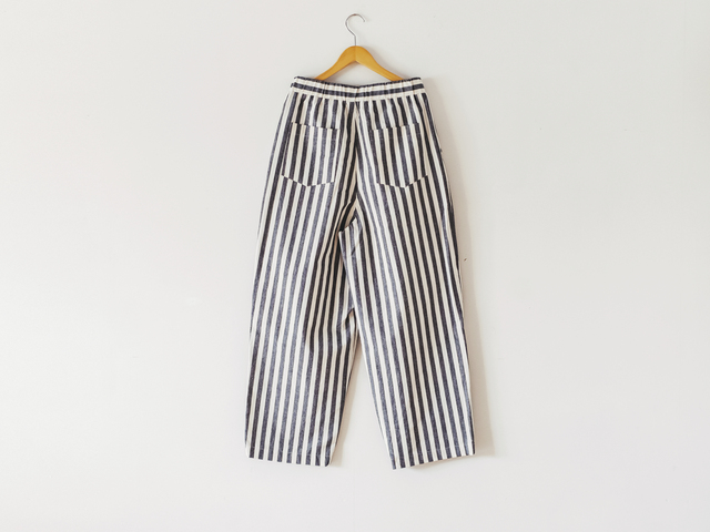 新鮮で現代的な空気が漂う新潟古町らしいシルエットと古典的な亀田縞の空気感により、新たな古町シティのパンツとなりました。是非一度足を通してみてください。