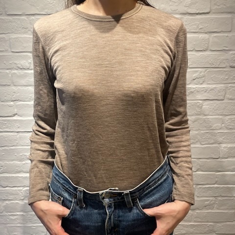 比較的薄手でなめらかな肌触りのシルク混インナーは、ニットやスウェットの下にはもちろん、薄手のお洋服のインナーとしても着用しやすくおすすめです。